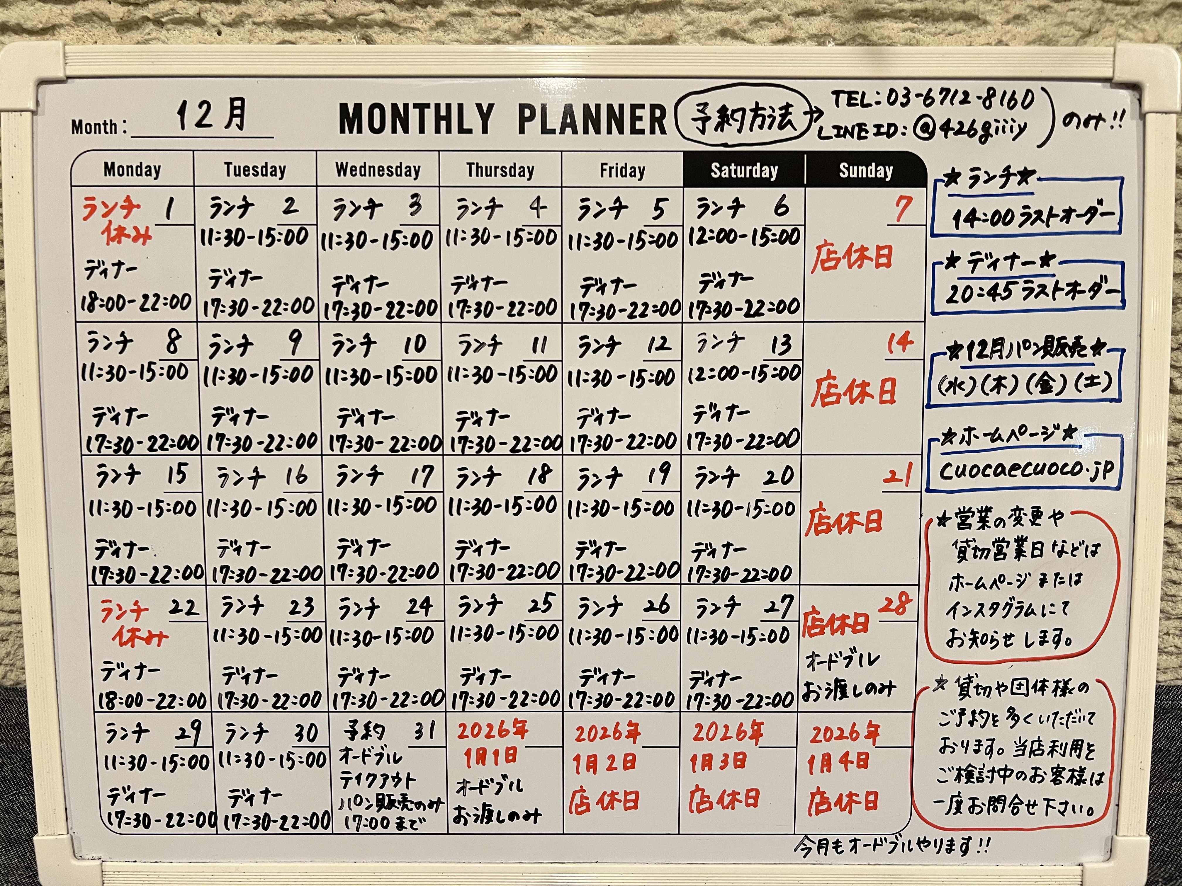 貸切営業や、営業変更があればインフォメーション、インスタグラムにてお知らせいたします。